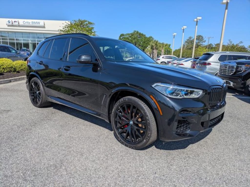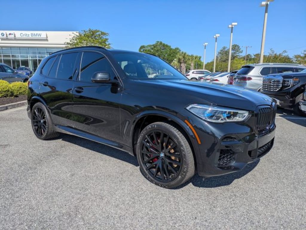 Clean CARFAX. CARFAX One-Owner. Certified. Black Sapphire Metallic 2022 BMW X5 xDrive40i AWD 8-Speed Automatic Sport 3.0L I6 DOHC 24V TwinPower Turbo APPLE CAR PLAY, ANDROID AUTO, USB PORTS, BLUETOOTH, Black Leather, Active Park Distance Control, Adaptive M Suspension, Aerodynamic Kit, Alloy wheels, Connected Package Pro, Drive Recorder, Executive Package, Front Massaging Seats, Front Ventilated Seats, Gesture Control, Glass Controls, Head-Up Display, High-Gloss Shadowline Roof Rails, Icon Adaptive LED Headlights w/Laserlight, Increased Top Speed Limiter, Luxury Seating Package, M Sport Package, M Sport Package (337), M Steering Wheel, Multi-Contour Seats, Navigation System, Panoramic Sky Lounge LED Roof, Parking Assistance Package, Parking Assistant Plus, Rear Manual Side Window Shades, Rear-View Camera, Remote Engine Start, Shadowline Exterior Trim, Surround View w/3D View, Vernasca Leather Upholstery, Wheels: 22" x 9.5" Fr & 22" x 10.5" Rr Black, Without Lines Designation Outside.
