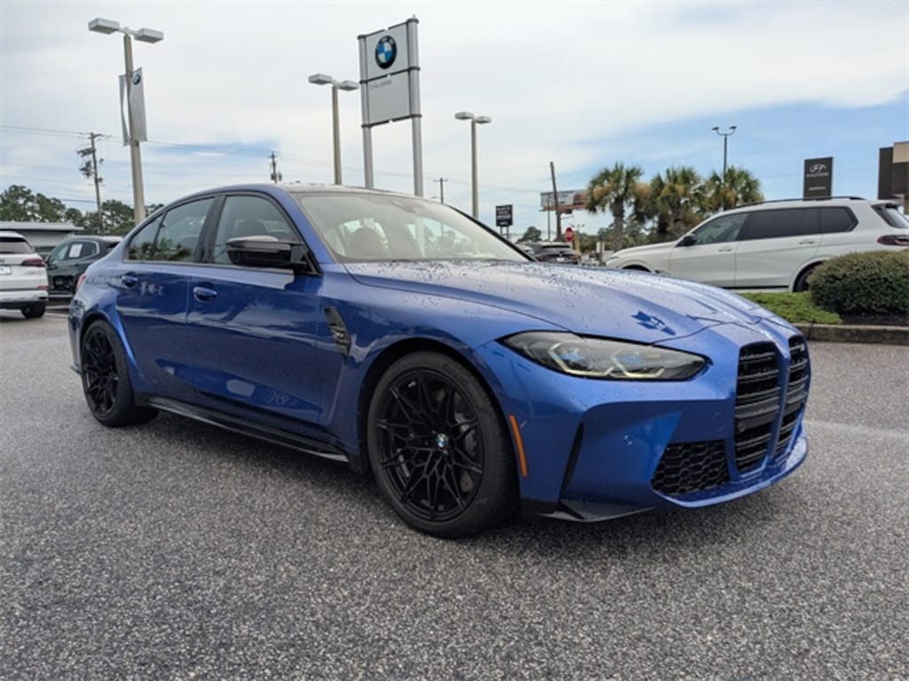 Clean CARFAX. CARFAX One-Owner. Certified. Portimao Blue Metallic 2023 BMW M3 Base RWD 6-Speed Manual 3.0L I6 Turbocharged DOHC 24V LEV3-ULEV70 473hp APPLE CAR PLAY, ANDROID AUTO, USB PORTS, BLUETOOTH, BMW Curved Display w/HUD, Connected Package Pro, Executive Package, Executive Package (DISC), Heated Steering Wheel, Navigation System, Parking Assistance Package, Parking Assistant Plus, Power Tailgate, SensaTec Dashboard, Wheels: 19"x9.5" Fr. & 20"x10.5" Rr M Black.