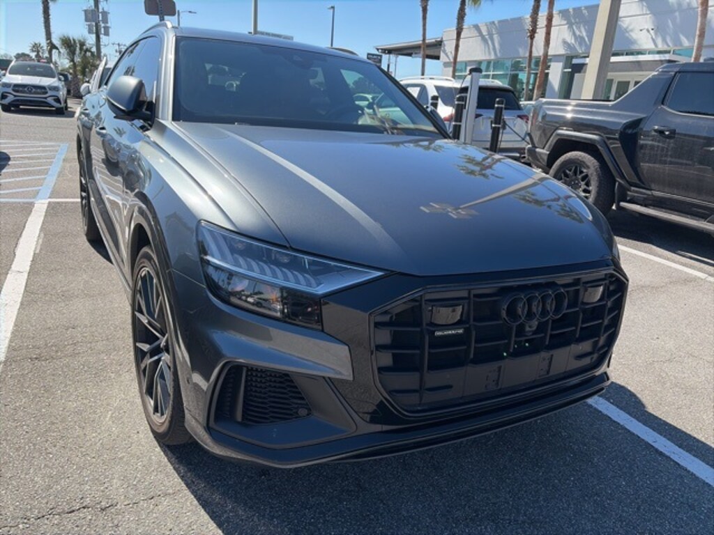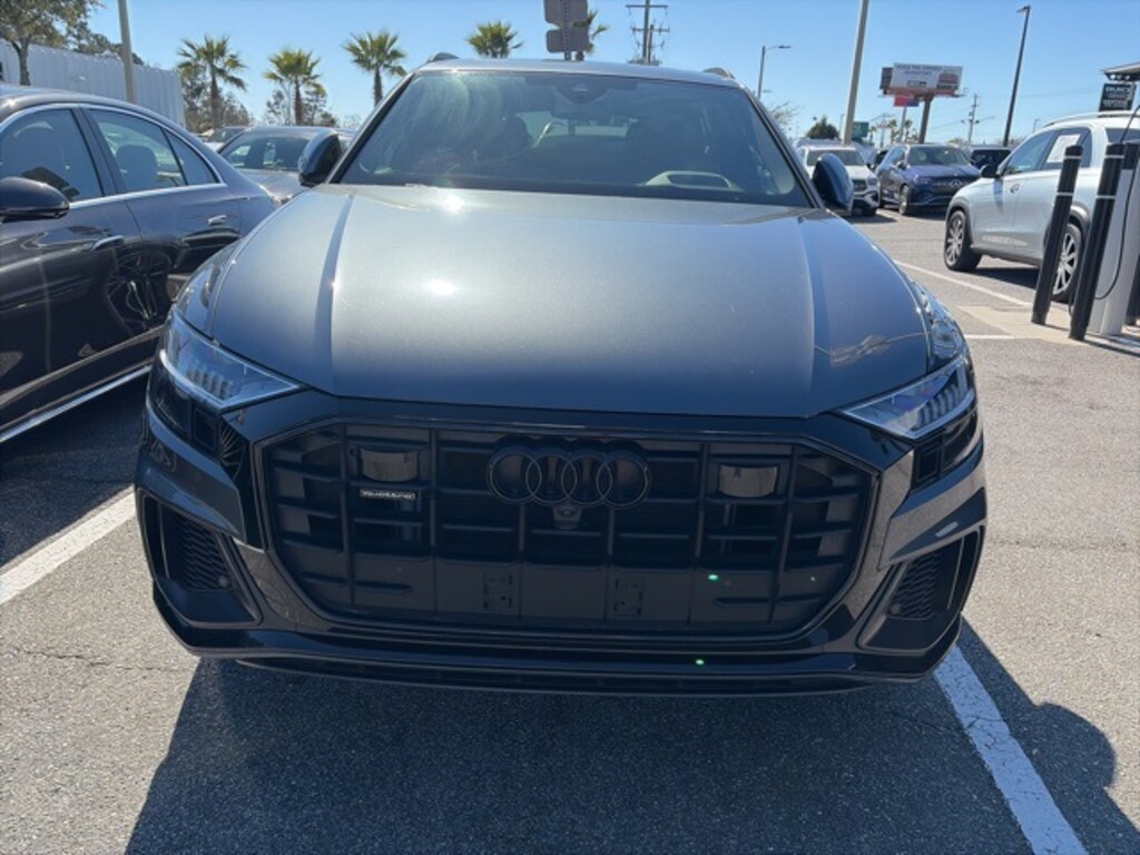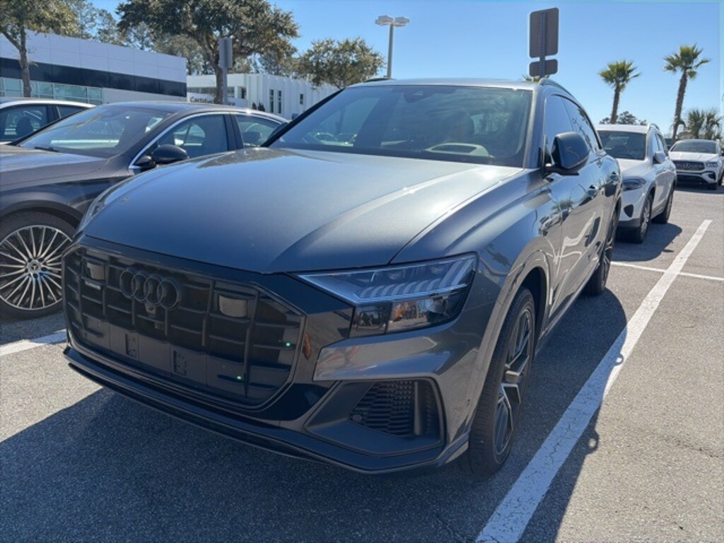 CARFAX One-Owner. Recent Arrival! Gray 2022 Audi Q8 55 Prestige quattro quattro quattro 8-Speed Automatic with Tiptronic 3.0L V6 Turbocharged DOHC 24V LEV3-ULEV70 335hp APPLE CAR PLAY, ANDROID AUTO, USB PORTS, BLUETOOTH, 4-Zone Climate Control, Adaptive Cruise Assist w/Lane Guidance, Alloy wheels, Bang & Olufsen 3D Premium Sound System, Black Optic Package, Comfort Adaptive Air Suspension, Contour/Ambient LED Interior Lighting Package, Convenience Package, Driver & Passenger Front Seats w/Ventilation, Electric Sun Blinds for Rear Side Windows, Executive Package, Head-Up Display, Headlight Washers, Illuminated Door Sills, Intersection Assist, Navigation system: Audi MMI Navigation plus with Touch Response, Power Soft-Closing Doors, Prestige Package, S Line Front & Rear Bumpers, S Line Side Sills, S-Line Exterior Package, Traffic Sign Recognition, Upper Dashboard in Leather w/Contrast Stitching, Wheels: 21" Bi-Color 5-W-Spoke-Design.