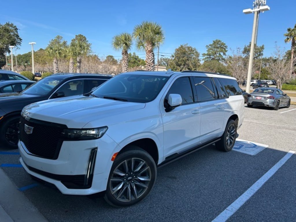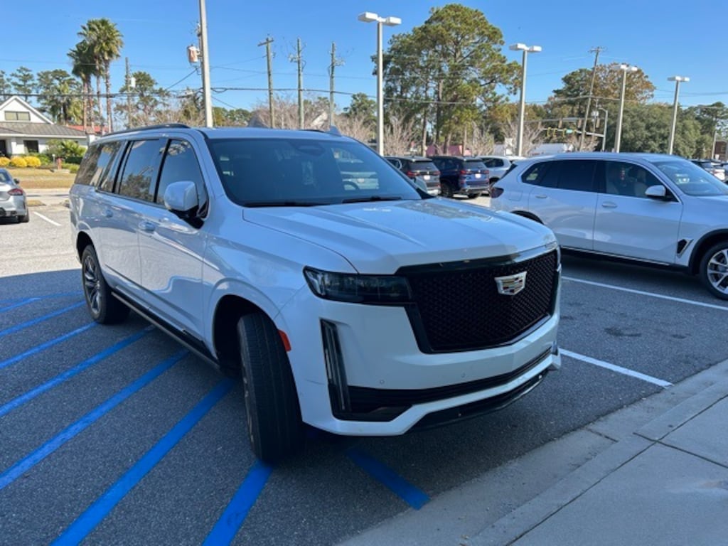 Clean CARFAX. CARFAX One-Owner. Recent Arrival! Crystal White Tricoat 2022 Cadillac Escalade ESV Sport 4WD 10-Speed Automatic with Overdrive 6.2L V8 APPLE CAR PLAY, ANDROID AUTO, USB PORTS, BLUETOOTH, 4WD, Active Cruise Control, Adaptive Cruise Control, Air Ride Adaptive Suspension, AKG Studio 19-Speaker Audio System, Alloy wheels, Automatic Seat Belt Tightening, Automatic Stop/Start, Body-Color Door Handles, Door Lock & Latch Shields, Electronic Limited-Slip Differential, Enhanced Automatic Emergency Braking, Enhanced Automatic Parking Assist, Glass Breakage Sensor, Heated & Ventilated Driver & Front Passenger Seats, Hitch Guidance w/Hitch View, Illuminating Front & Rear Sill Plates, Integrated Trailer Brake Controller, Power Panoramic Tilt-Sliding Sunroof, Preferred Equipment Group 1SC, Rear Camera Mirror, Rear Camera Mirror Washer, Rear Cross Traffic Alert, Reconfigurable Full-Color Head-Up Display, Reverse Automatic Braking, Running Board Assist Steps, Smart Trailer Integration Indicator, Soft Closing Front & Rear Doors, Start/Stop System Disable Button, Theft-Deterrent Alarm System, Touring Package, Trailer Side Blind Zone Alert, Vehicle Inclination Sensor, Vehicle Interior Movement Sensor, Wheels: 22" 12-Spoke Polished Alloy.