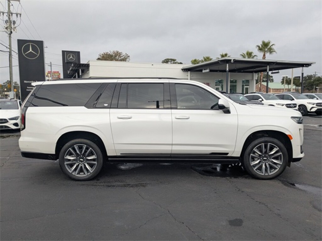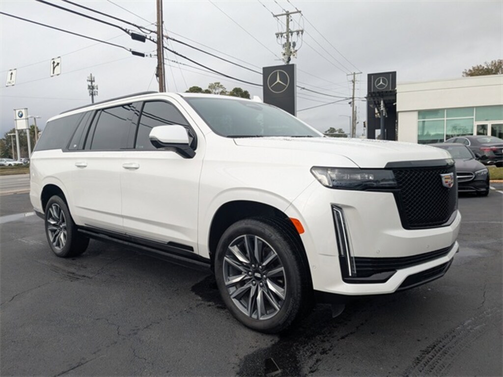 Clean CARFAX. CARFAX One-Owner. Crystal White Tricoat 2022 Cadillac Escalade ESV Sport 4WD 10-Speed Automatic with Overdrive 6.2L V8 APPLE CAR PLAY, ANDROID AUTO, USB PORTS, BLUETOOTH, 4WD, Active Cruise Control, Adaptive Cruise Control, Air Ride Adaptive Suspension, AKG Studio 19-Speaker Audio System, Alloy wheels, Automatic Seat Belt Tightening, Automatic Stop/Start, Body-Color Door Handles, Door Lock & Latch Shields, Electronic Limited-Slip Differential, Enhanced Automatic Emergency Braking, Enhanced Automatic Parking Assist, Glass Breakage Sensor, Heated & Ventilated Driver & Front Passenger Seats, Hitch Guidance w/Hitch View, Illuminating Front & Rear Sill Plates, Integrated Trailer Brake Controller, Power Panoramic Tilt-Sliding Sunroof, Preferred Equipment Group 1SC, Rear Camera Mirror, Rear Camera Mirror Washer, Rear Cross Traffic Alert, Reconfigurable Full-Color Head-Up Display, Reverse Automatic Braking, Running Board Assist Steps, Smart Trailer Integration Indicator, Soft Closing Front & Rear Doors, Start/Stop System Disable Button, Theft-Deterrent Alarm System, Touring Package, Trailer Side Blind Zone Alert, Vehicle Inclination Sensor, Vehicle Interior Movement Sensor, Wheels: 22" 12-Spoke Polished Alloy.