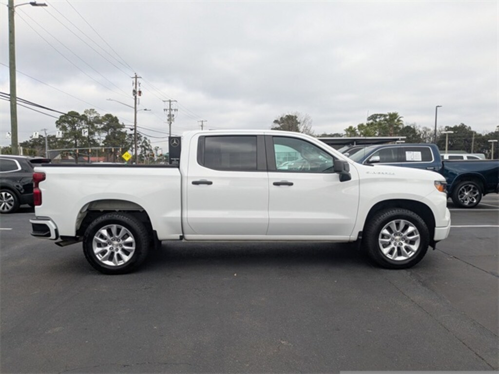 CARFAX One-Owner. Summit White 2023 Chevrolet Silverado 1500 Custom RWD 8-Speed Automatic 2.7L Turbo APPLE CAR PLAY, ANDROID AUTO, USB PORTS, BLUETOOTH, 8-Speed Automatic, Black Cloth, 10-Way Power Driver Seat w/Lumbar, 120-Volt Instrument Panel Power Outlet, 3.5" Monochromatic Display Driver Info Center, Bluetooth® For Phone, Color-Keyed Carpeting Floor Covering, Compass, Custom Convenience Package, Custom Value Package, Deep-Tinted Glass, Dual Rear USB Ports (Charge Only), Electric Rear-Window Defogger, Electrical Steering Column Lock, Electronic Cruise Control, EZ Lift Power Lock & Release Tailgate, Front Frame-Mounted Black Recovery Hooks, Front Rubberized Vinyl Floor Mats, HD Rear Vision Camera, High Capacity Suspension Package, LED Cargo Area Lighting, Manual Tilt Wheel Steering Column, OnStar & Chevrolet Connected Services Capable, Power Front Windows w/Driver Express Up/Down, Power Front Windows w/Passenger Express Down, Power Rear Windows w/Express Down, Preferred Equipment Group 1CX, Rear 60/40 Folding Bench Seat (Folds Up), Rear Rubberized-Vinyl Floor Mats, Remote Keyless Entry, Remote Vehicle Starter System, SiriusXM Radio, Standard Tailgate, Theft Deterrent System (Unauthorized Entry), Trailering Package, Wireless Phone Projection.