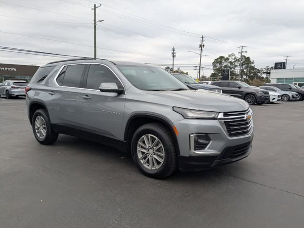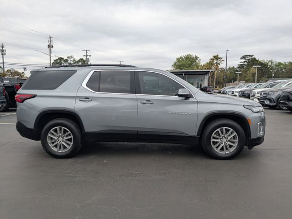 Clean CARFAX. Sterling Gray Metallic 2023 Chevrolet Traverse LT 1LT 1LT FWD 9-Speed Automatic 3.6L V6 SIDI VVT USB PORTS, BLUETOOTH, 3.49 Axle Ratio, 4.2" Multi-Color Enhanced Driver Instrument Display, Alloy wheels, Black Molded Assist Steps (LPO), Black Roof Rack Cross Rails, Convenience & Driver Confidence Package, Heated Driver & Front Passenger Seats, Hit The Road Package, Navigation System, Preferred Equipment Group 1LT, Radio: Chevrolet Infotainment 3 Plus System, Rear Power Liftgate, Remote Start, Universal Home Remote, Wheels: 18" Bright Silver-Painted Aluminum.