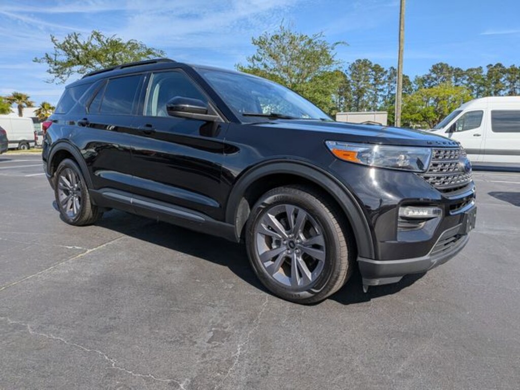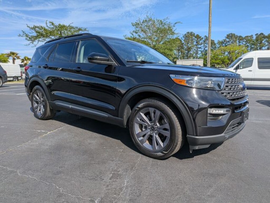 Clean CARFAX. Black Metallic 2022 Ford Explorer XLT RWD 10-Speed Automatic 2.3L EcoBoost I-4 APPLE CAR PLAY, ANDROID AUTO, USB PORTS, BLUETOOTH, ActiveX Captain's Chairs, Alloy wheels, Class IV Trailer Tow Package, Equipment Group 202A, Heated Steering Wheel, LED Fog Lamps, Remote Start System, SecuriCode Keyless Entry Keypad, Wheels: 18" 5-Spoke Silver-Painted Aluminum, XLT Sport Appearance Package.
