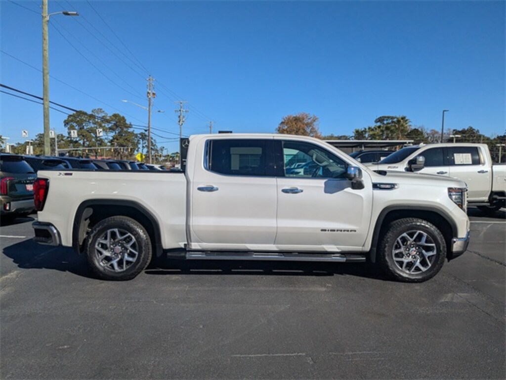 Clean CARFAX. CARFAX One-Owner. White Frost Tricoat 2023 GMC Sierra 1500 SLT 4WD 10-Speed Automatic 3.0L I6 APPLE CAR PLAY, ANDROID AUTO, USB PORTS, BLUETOOTH, 10-Speed Automatic, 4WD, Dark Walnut/Slate Leather, 120-Volt Instrument Panel Power Outlet, 170 Amp Alternator, 2 Charge/Data USB Ports, 2 Type-C Charge-Only Rear USB Ports, 20" Polished Aluminum Wheels, 6-Speaker Audio System Feature, Adaptive Cruise Control, All-Weather Floor Liner (LPO), Alloy wheels, Auto-Locking Rear Differential, Auxiliary External Transmission Oil Cooler, Chrome Header & Chrome Grille Insert Bars, Chrome Wheel To Wheel Assist Steps, Color-Keyed Carpeting Floor Covering, Compass, Deep-Tinted Glass, Electric Rear-Window Defogger, Electrical Steering Column Lock, Floor-Mounted Center Console, Front Bucket Seats, Front Frame-Mounted Black Recovery Hooks, Front Rainsensing Wipers, GMC Connected Access Capable, HD Rear Vision Camera, HD Surround Vision, Heated 2nd Row Outboard Seats, High Capacity Suspension Package, Hitch Guidance w/Hitch View, In-Vehicle Trailering App, Integrated Trailer Brake Controller, Keyless Open & Start, LED Cargo Area Lighting, Manual Tilt-Wheel & Telescoping Steering Column, Navigation System, OnStar & GMC Connected Services Capable, Perimeter Lighting, Power Door Locks, Power Front Passenger Windows w/Express Up/Down, Power Front Windows w/Driver Express Up/Down, Power Rake & Telescoping Steering Column, Power Rear Windows w/Express Down, Power Sliding Rear Window w/Rear Defogger, Preferred Equipment Group 4SA, Premium Bose 7-Speaker Sound System, ProGrade Trailering System, Push Button Start, Rear Cross Traffic Braking, Rear Pedestrian Detection, Rear Wheelhouse Liners, Remote Vehicle Starter System, Safety Alert Seat, Sierra Safety Plus Package, SiriusXM w/360L, SLT Convenience Package, SLT Preferred Package, SLT Premium Package, SLT Premium Plus Package, Spray-On Pickup Bed Liner w/GMC Logo, Standard Suspension Package, Steering Wheel Audio Controls, Theft Deterrent System (Unauthorized Entry), Trailer Camera Provisions, Trailer Side Blind Zone Alert, Trailering Package, Ultrasonic Front & Rear Park Assist, Universal Home Remote, Ventilated Driver & Front Passenger Seats, Wheels: 20" Polished Aluminum w/RFX, Wi-Fi Hotspot Capable, Wireless Charging, Wireless Phone Projection, X31 Off-Road & Protection Package, X31 Off-Road Package.