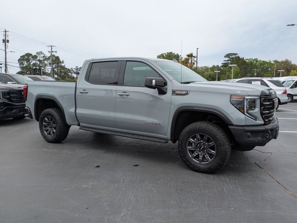 Clean CARFAX. CARFAX One-Owner. Thunderstorm Gray 2025 GMC Sierra 1500 AT4X 4WD 10-Speed Automatic EcoTec3 6.2L V8 APPLE CAR PLAY, ANDROID AUTO, USB PORTS, BLUETOOTH, 10-Speed Automatic, 4WD, Obsidian Rush Leather, 120-Volt Interior Power Outlet, 1st & 2nd Row AEV All-Weather Floor Liners (LPO), 2 Charge/Data USB Ports Inside Center Console, 2 Type-C Charge-Only Rear USB Ports, 2 USB Ports, AEV Branded Front Head Restraints, AEV Stamped-Steel Rear Bumper, AEV Tailgate Decal w/Exterior Badging, Alloy wheels, AT4X AEV Edition, Bed View Camera, Bose Premium Series w/12-Speaker System, Color-Keyed Carpeting Floor Covering, Deep-Tinted Glass, Driver-Selectable Full-Locking Front Differential, Driver-Selectable Full-Locking Rear Differential, Electric Rear-Window Defogger, Floor-Mounted Center Console, Front Prem Floor Liners w/Removable Carpet Insert, Front Rain-Sensing Wipers, Gloss Black Door Handles, Gloss Black Header w/Drk Nickel Grille Insert Bars, HD Surround Vision, Heated 2nd Row Outboard Seats, Heated Driver & Front Outboard Passenger Seating, Heavy-Duty Air Filter, Hill Descent Control, Hitch View, In-Vehicle Trailering System App, Integrated Trailer Brake Controller, Keyless Open & Start, LED Cargo Area Lighting, Multicolor 15" Diagonal Head-Up Display, MultiPro Tailgate Audio System by Kicker (LPO), Navigation System, OnStar Services Capable, Perimeter Lighting, Power Door Locks, Power Front Passenger Windows w/Express Up/Down, Power Front Windows w/Driver Express Up/Down, Power Rake & Telescoping Steering Column, Power Rear Windows w/Express Down, Power Sliding Rear Window w/Rear Defogger, Power Sunroof, Preferred Equipment Group 4SG, Push Button Start, Rear Cross Traffic Braking, Rear Pedestrian Detection, Rear Wheelhouse Liners, Remote Vehicle Starter System, Rocker Protection (LPO), SiriusXM w/360L Trial Subscription, Spray-On Pickup Bedliner w/GMC Logo, Steering Wheel Audio Controls, Theft Deterrent System (Unauthorized Entry), Trailer Camera Provisions, Trailer Side Blind Zone Alert, Trailer Tire Pressure Monitor System, Trailering Package, Ultrasonic Front & Rear Park Assist, Universal Home Remote, Ventilated Driver & Front Passenger Seats, Wheels: 18" x 8.5" 12-Spoke High Gloss Black Alum, Wi-Fi Hotspot Capable, Wireless Charging.