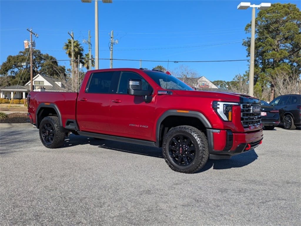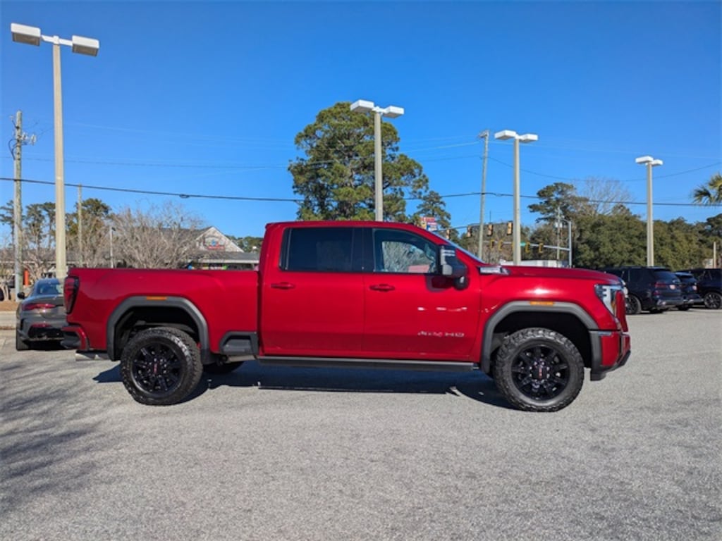 Clean CARFAX. CARFAX One-Owner. Volcanic Red Tintcoat 2025 GMC Sierra 2500HD AT4 4WD 10-Speed Automatic Duramax 6.6L V8 Turbodiesel APPLE CAR PLAY, ANDROID AUTO, USB PORTS, BLUETOOTH, 10-Speed Automatic, 4WD, Jet Black With Kalahari Accents Leather, 120-Volt Bed Mounted Power Outlet, 120-Volt Instrument Panel Power Outlet, 2 Charge-Only Rear USB Ports, 2 Charge/Data USB Ports Inside Center Console, 2 USB Ports, 2-Speed Active Transfer Case, 3.42 Axle Ratio, 5th Wheel & Gooseneck Trailer Wiring Provisions, Alloy wheels, AT4 Preferred Package, AT4 Premium Plus Package, Bed View Camera w/2 Trailer Camera Provisions, Bose Premium 7-Speaker Sound System, Deep-Tinted Glass, Electric Rear-Window Defogger, Floor-Mounted Center Console, Front Prem Floor Liners w/Removable Carpet Insert, Front Rain-Sensing Wipers, Gloss Black Header Grille & Grille Insert Bars, Gooseneck/5th Wheel Prep Package, HD Surround Vision, Heated 2nd Row Outboard Seats, Heated Driver & Front Outboard Passenger Seats, Hitch Guidance w/Hitch View, In-Vehicle Trailering System App, Keyless Open & Start, LED Cargo Area Lighting, LED Smoked Amber Roof Marker Lamps, Manual Tilt-Wheel/Telescoping Steering Column, Max Trailering Package, Off-Road High Clearance Step (LPO), OnStar Services Capable, Power Front Passenger Windows w/Express Up/Down, Power Sliding Rear Window w/Defogger, Power Sunroof, Preferred Equipment Group 4SB, Push Button Start, Radio: AM/FM w/Premium GMC Infotainment System, Rear Cross Traffic Alert, Rear Prem Floor Liners w/Removable Carpet Insert, Rear Wheelhouse Liners, Remote Vehicle Starter System, Safety Alert Seat, SiriusXM w/360L Trial Subscription, Spray-On Pickup Bedliner w/GMC Logo, Steering Wheel Audio Controls, Technology Package, Trailer Cam Provisions & Trailer Viewing Software, Trailer Side Blind Zone Alert, Ultrasonic Front & Rear Park Assist, Unauthorized Entry Theft-Deterrent System, Universal Home Remote, Ventilated Driver & Front Passenger Seats, Wheels: 20" High Gloss Black 8 Spokes Aluminum, Wireless Charging, Wireless Phone Projection, X31 Off-Road Package.