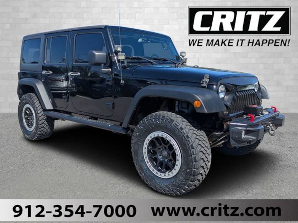 Clean CARFAX. Black Clearcoat 2017 Jeep Wrangler Unlimited Sport 4WD 5-Speed Automatic 3.6L V6 24V VVT USB PORTS, BLUETOOTH, Lift Kit, Upgraded wheels and tires, Auto-Dimming Mirror w/Reading Lamp, Deep Tint Sunscreen Windows, Front 1-Touch Down Power Windows, Leather Wrapped Steering Wheel, Power Convenience Group, Power Heated Mirrors, Power Locks, Quick Order Package 23C, Quick Order Package 24S, Remote Keyless Entry, Security Alarm, Speed control.