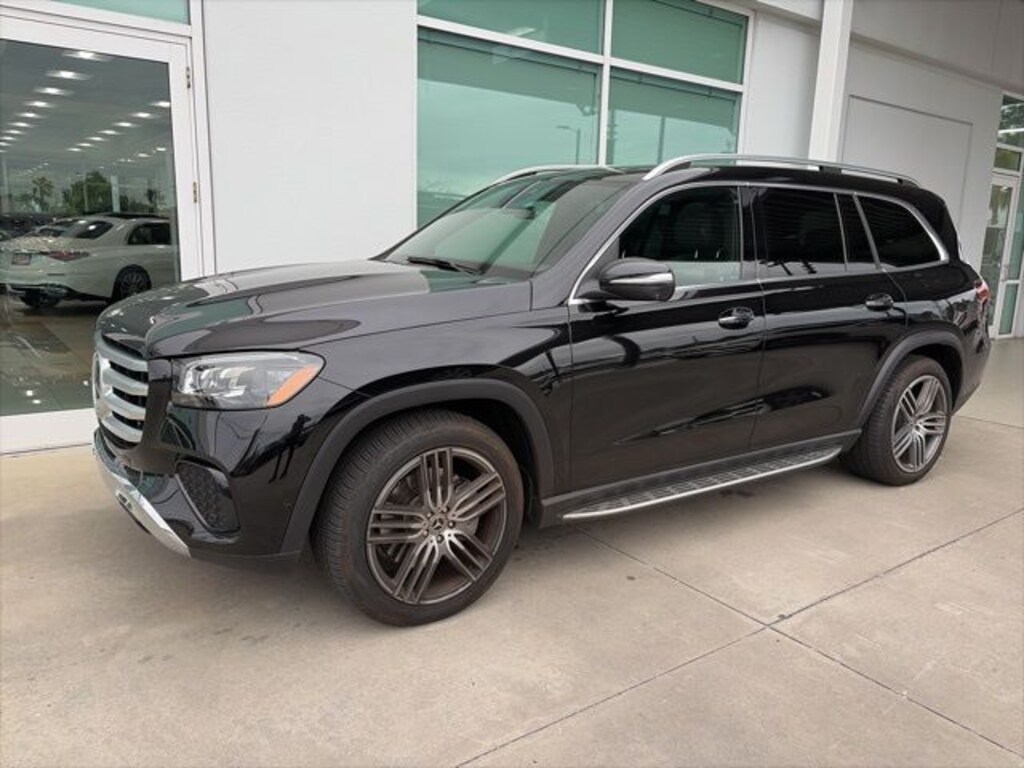 Clean CARFAX. Recent Arrival! Certified. Black 2025 Mercedes-Benz GLS 450 4MATIC® 4MATIC® 4MATIC® 9-Speed Automatic 3.0L I6 APPLE CAR PLAY, ANDROID AUTO, USB PORTS, BLUETOOTH, 6-Seat Configuration, Alloy wheels, Navigation system: MB Navigation, Power Liftgate, Power moonroof: Panorama, Wheels: 21" Triple 5-Spoke.
